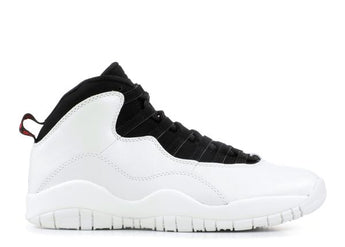 Michael Jordan announced his return to basketball in March 1995 after a brief hiatus to follow his dream of playing baseball with a straightforward statement: "I'm back." The Air Jordan 10 edition commemorates that time. The colorway features an upper white leather with a black tongue and lace on top of a white midsole and outsole. Details include 'I'm Back' on one heel tab with ' 3.18.95 ' on the other, and a list of his achievements on the sole.