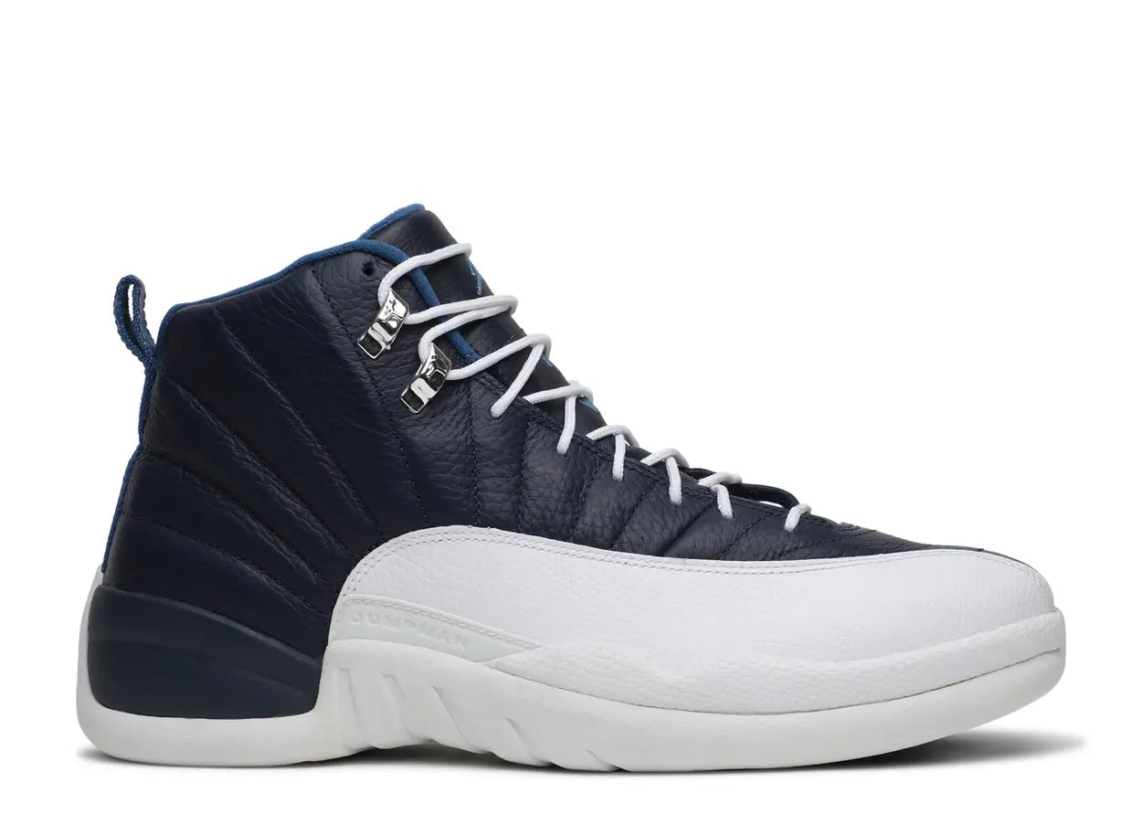 The only OG Air Jordan 12 that Michael Jordan never wore on court, the Air Jordan 12 Retro ‘Obsidian’ 2012 was the colorway's first retro release. The shoe's signature Rising Sun Flag upper is finished in Obsidian, contrasted by a white mudguard and outsole. Metallic silver eyelets add an elevated touch, while hits of University Blue finish off the look.