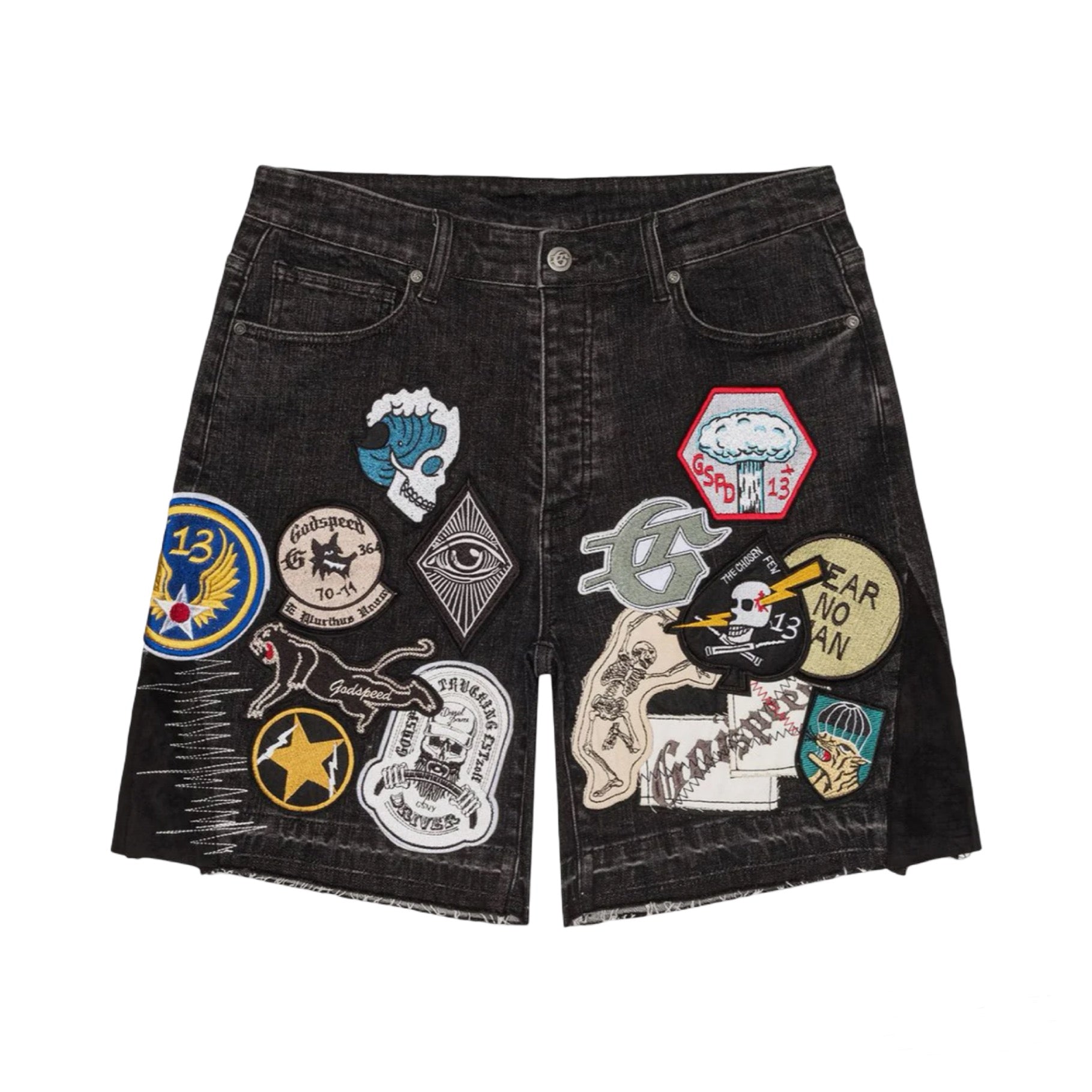 GODSPEED PATCHWORK DENIM SHORTS V2 'BLACK'