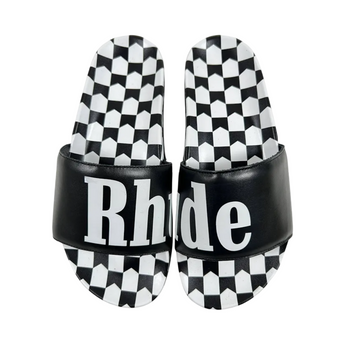 RHUDE CHECKERED LEATHER SLIDES 'BLACK WHITE'